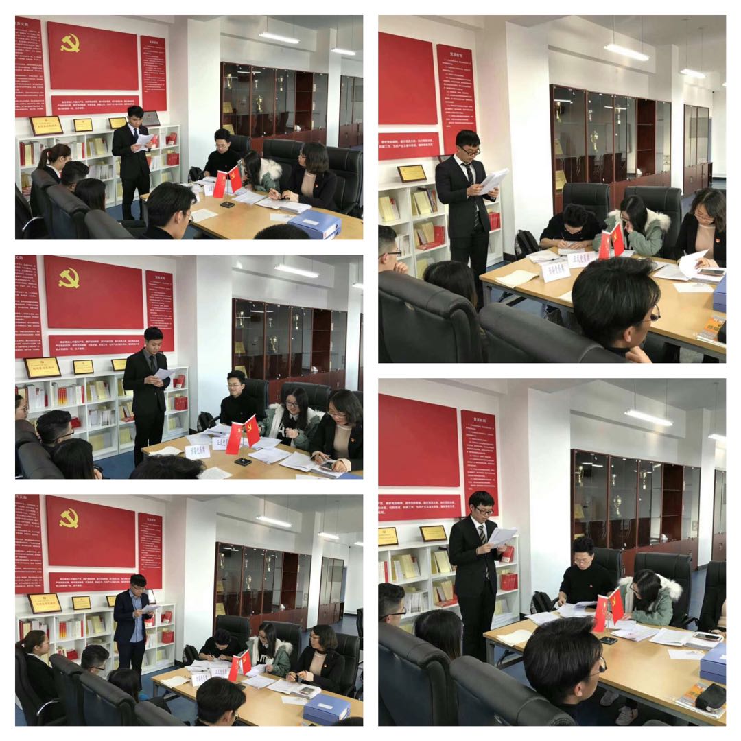 为了使新接收的同志更加深入贯彻学习十九大精神,增强党性,党支部书记师洪洪带领全体党员认真学习了从党的一大到十九大的主题、党的十九大对党章的十处重大修改。同时提出要求,作为新时代的共产党人,作为一名员工党员要时刻明白自己的使命,在今后的学习和工作中积极发挥先锋模范作用,吃苦在前、实干在前,忠实履行入党誓言,践行职责使命。