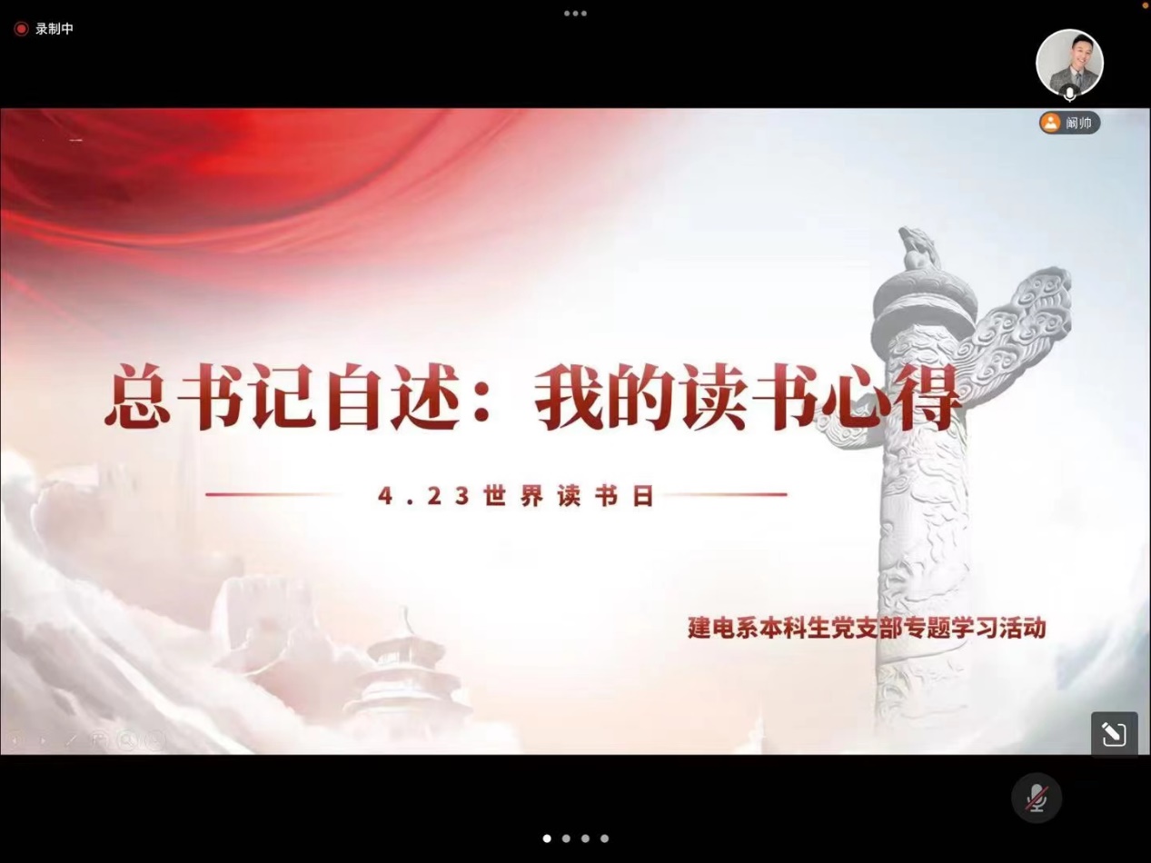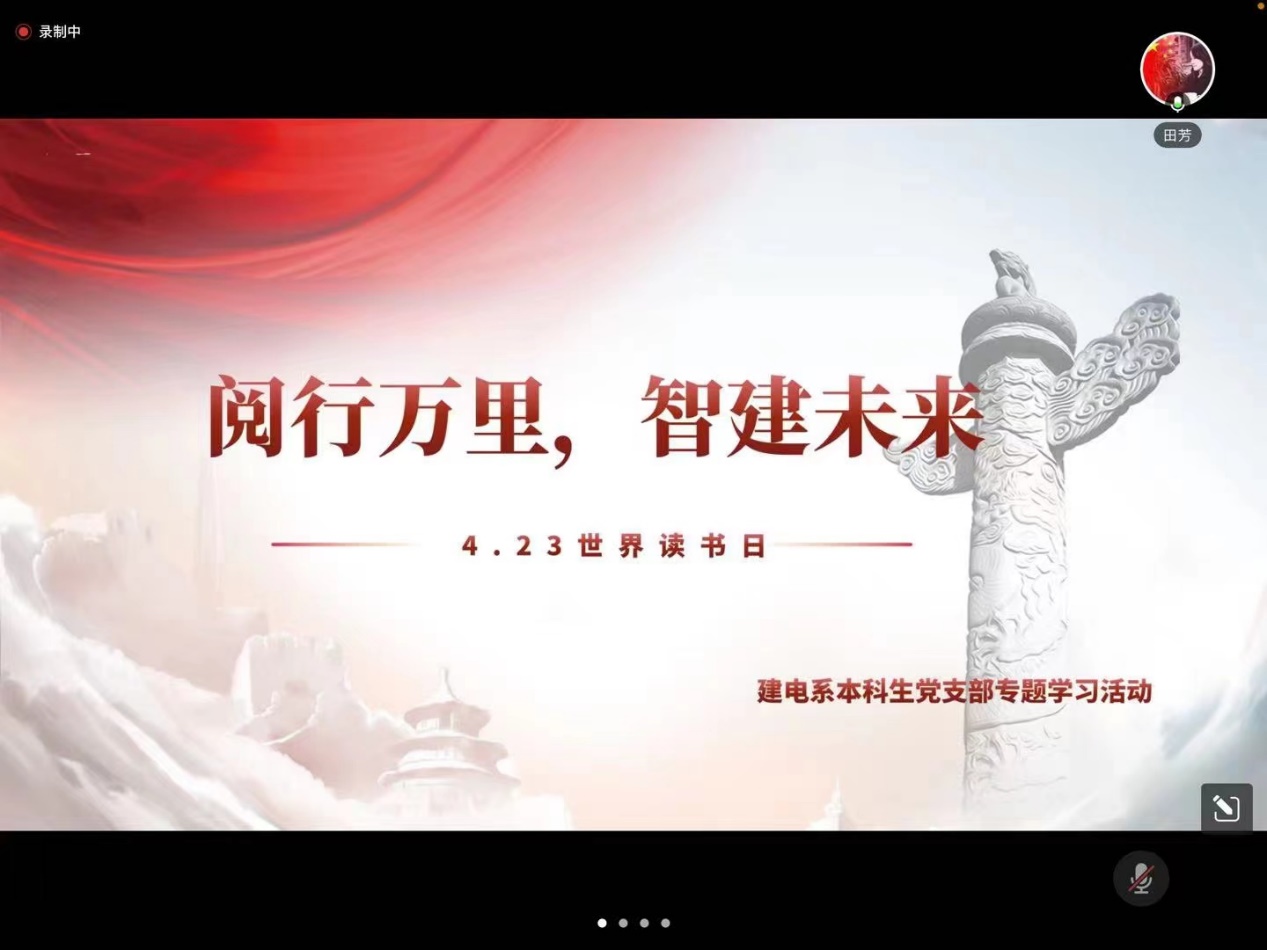 4月23日,电信WilliamHill党委以“世界读书日”为契机,推进“学习型”党支部建设,作为全国样板支部培育创建单位——建电系本科生党支部举办了“阅行万里,智见未来”世界读书日专题学习活动。师生党员、积极分子和低年级入党申请人共同学习习近平总书记的读书心得,并交流读书心得感悟,继承和弘扬共产党人“重视学习”的优秀品质。学习会由党支部书记阚帅主持。