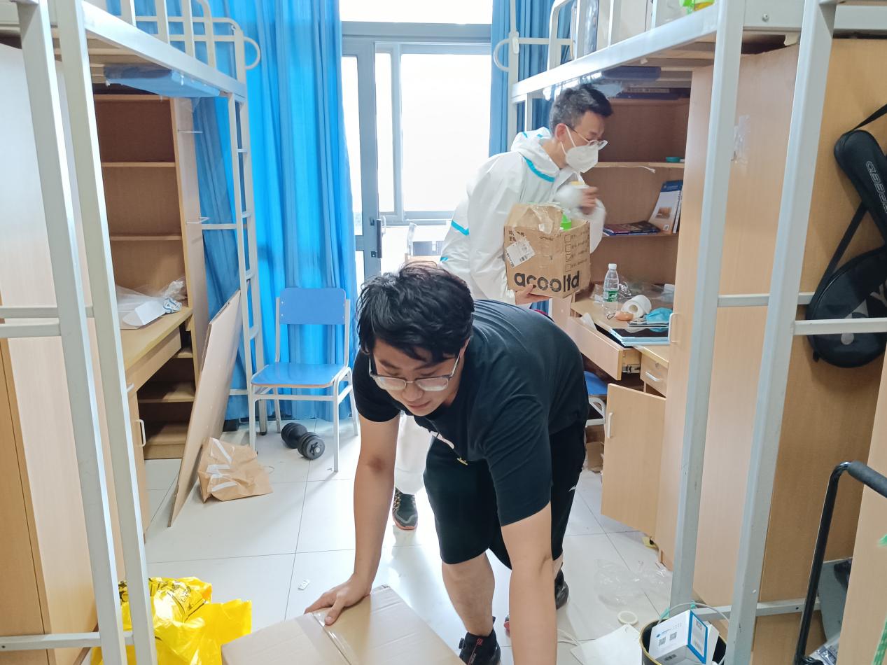 在寝室里打包的过程中,员工党员们与毕业生们进行视频连线,确认所需要打包的物品。员工党员们在寝室里上下奔走,爬高俯身,耐心地反复确认每一处细节,精确地定位每一件物品,争取做到一件不漏,确保每一段珍贵的回忆都能回到毕业生的手中。