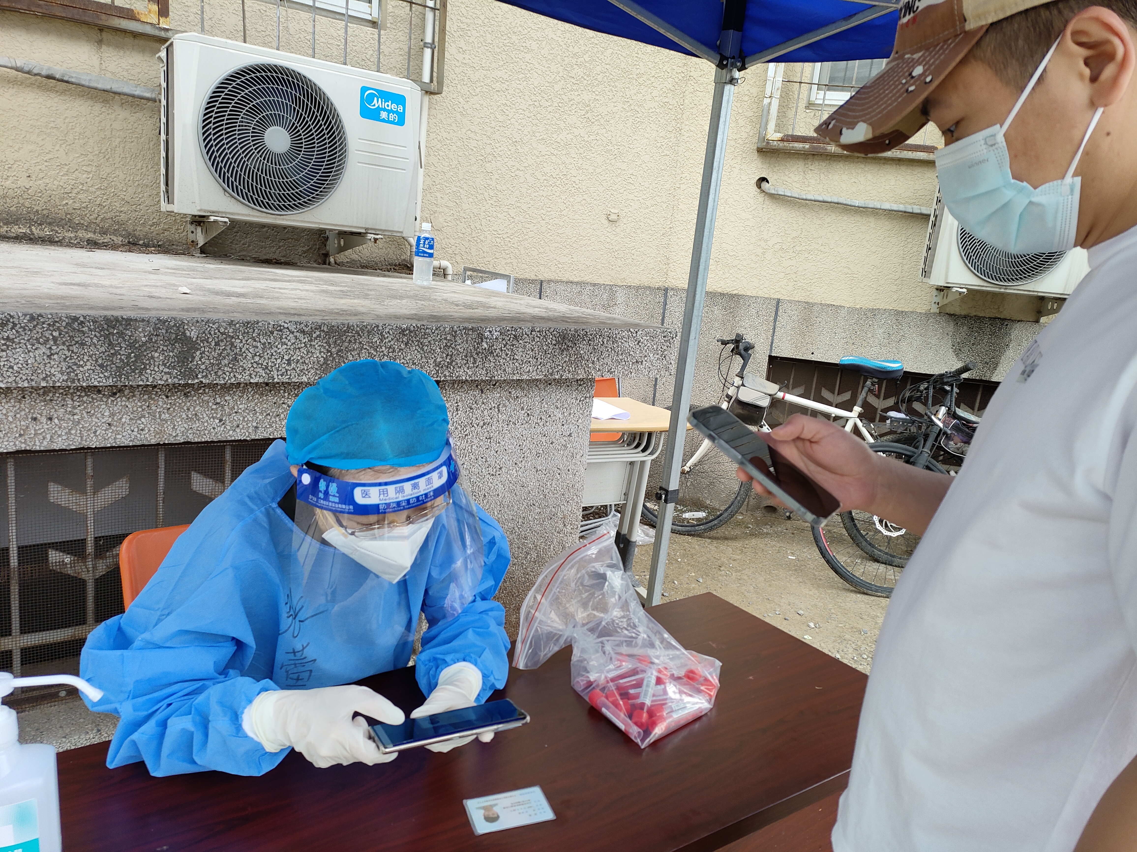 在集团出入口值守,协助执勤保安为出入人员扫码测温,把好门、守好岗,共同营造平安家园。化身小蓝,下沉一线,促进检测效率,守护群众生命安全和身体健康。