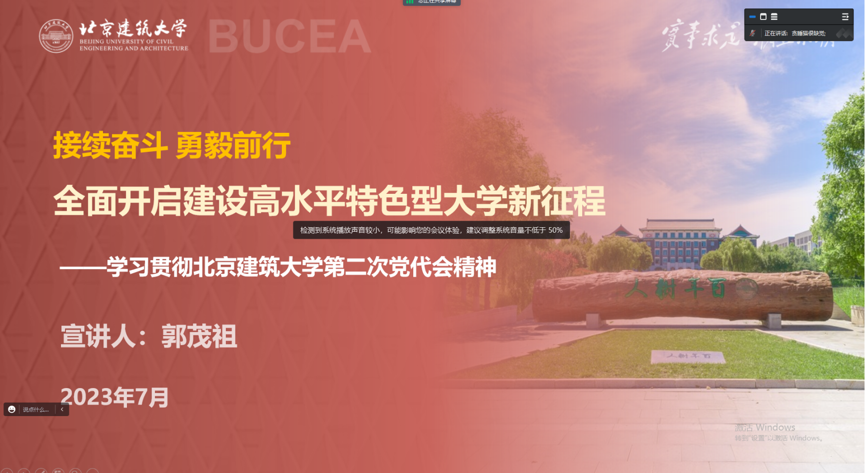 郭茂祖经理向大家提纲挈领的介绍了学校第二次党代会报告的主要内容,分享了自己的学习体会,同时指出了党代会报告的核心要义。郭经理强调,“七个必须坚持”是学校实现进一步提升必须遵循的行动指南,“四大突破”指明了学校事业发展的宏伟目标,“八个显著提升”从具体层面指出了学校事业发展的主攻方向,“八大工程”从实践层面明确了学校事业发展的具体任务,“党建引领”战略为推动事业高质量发展提供制度保障和战略支持。