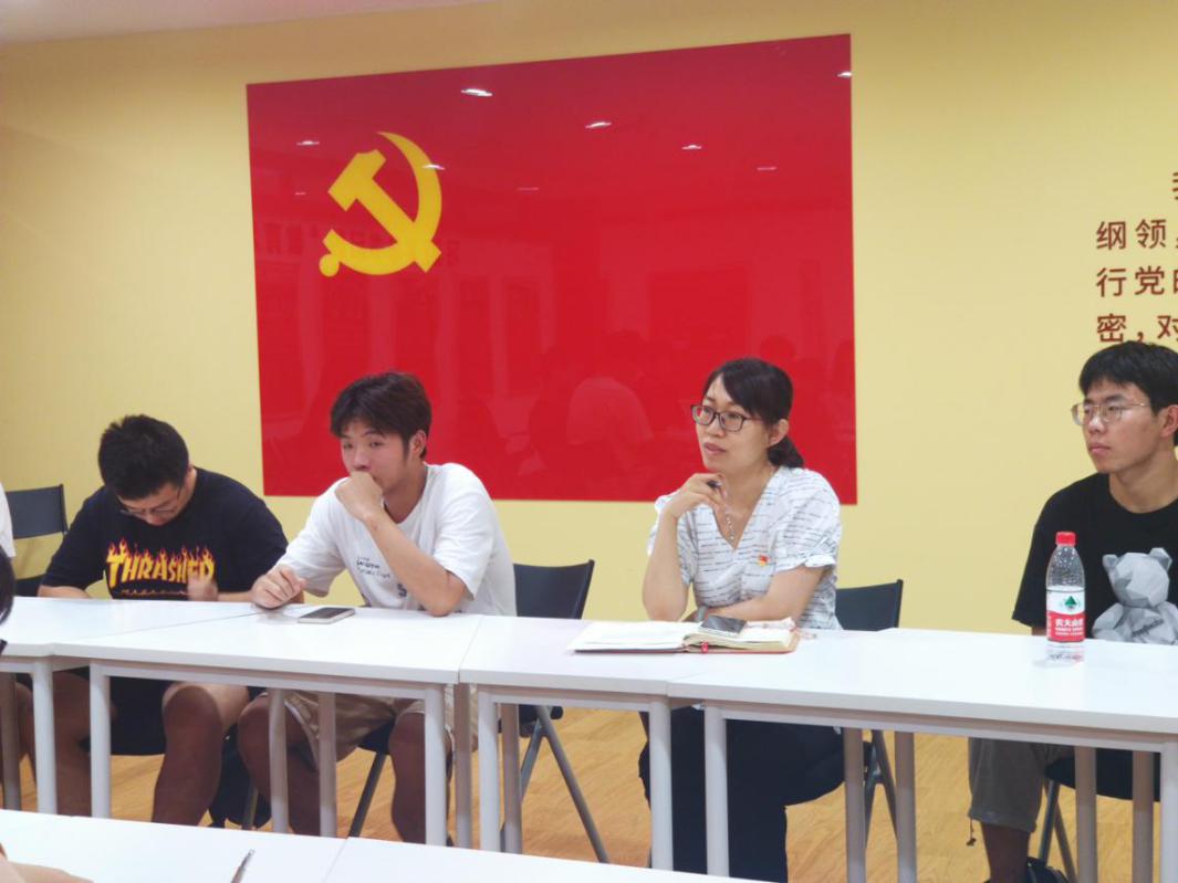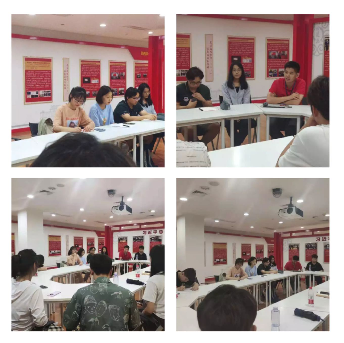 胡道容讲述了对“习近平总书记七一讲话”内容理解不够透彻的原因、如何解决该问题的方法以及自己是如何将该方法实践的;王蕾婷讲述了自己近期通过观看历史影视剧等方式学习党史得到的感悟,表达了自己对曾经为革命奋斗的先烈的大无畏精神的敬佩,并表示对自己成功加入中国共产党感到无比地自豪;王健怡讲述了通过参与近期重大活动,对自我思想觉悟的提高、对时间把控能力的提高以及对“每一个岗位都有其存在的价值”的深刻理解;陈洪博表示,在平时的学习和工作中,需要摆正自己的心态、不畏难,同时提高自身自控力和办事效率,并据此对自己和其他同志提出了自我批评与批评;金慧琳说,我们应该进一步帮助班里同学了解中国共产党,可以通过带领大家一起看“七一”讲话等活动加强同学们对党的认识,同时也要提高自己参与各项活动的积极性。