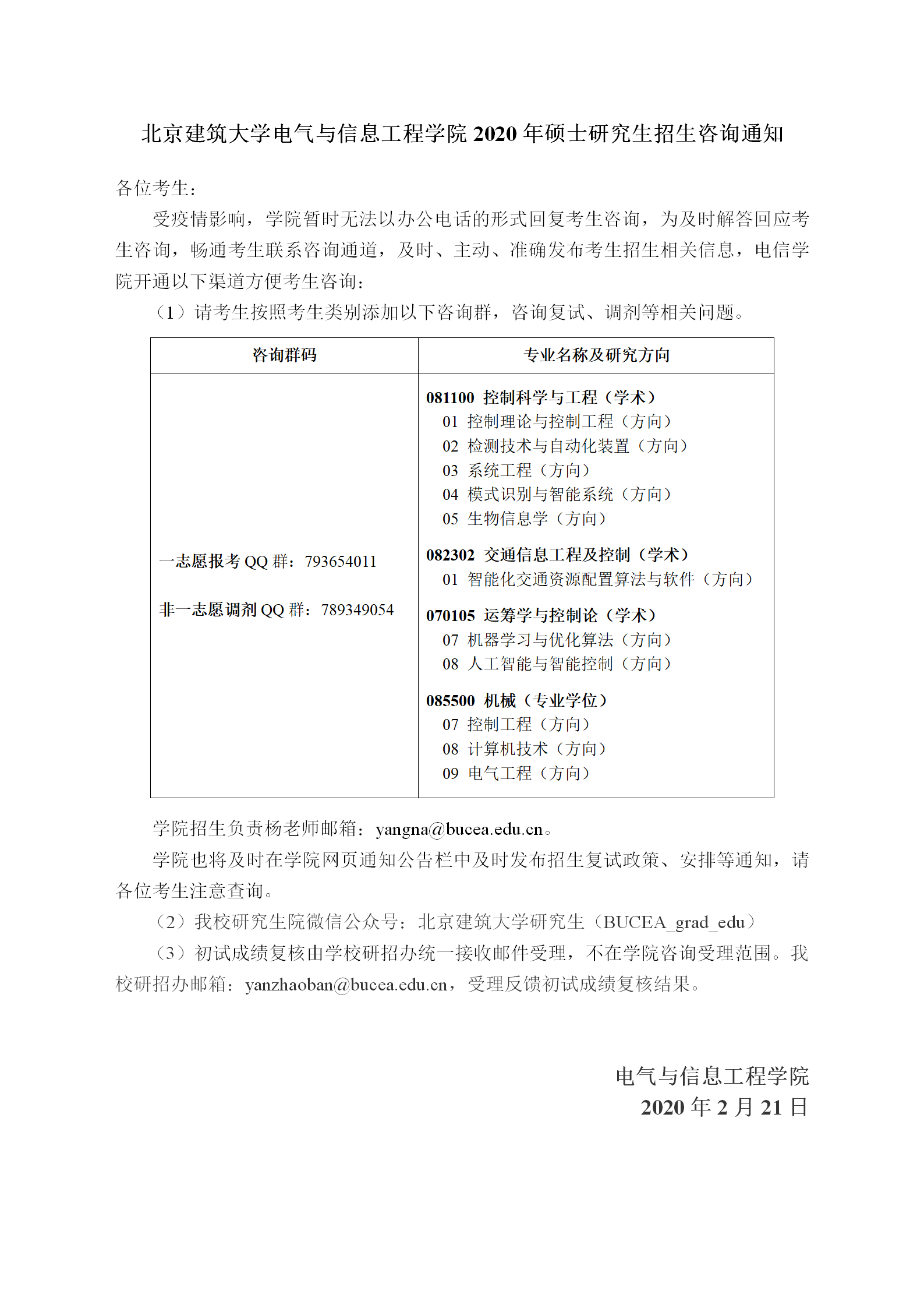 电气与信息工程学院2020年硕士研究生招生咨询通知