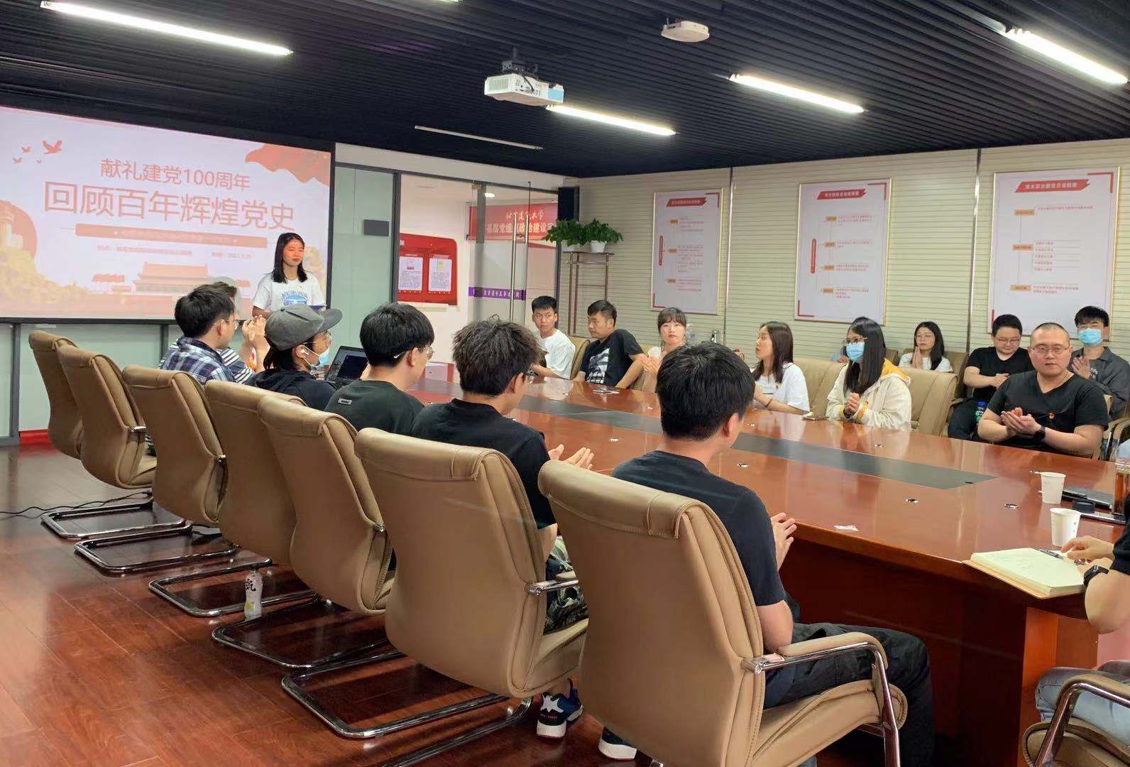 首先,张雅喆介绍了本支部的人员组成及支部工作开展情况,着重强调本次活动的流程,通过学习党的百年光辉历史,进一步提升党支部规范化建设,结合前期自查建立具体整改方案,为党支部全体党员进一步明确了党员责任和政治站位,进一步强调了党史学习要学深、学实,在工作学习生活中发挥党员模范作用和支部战斗堡垒作用。