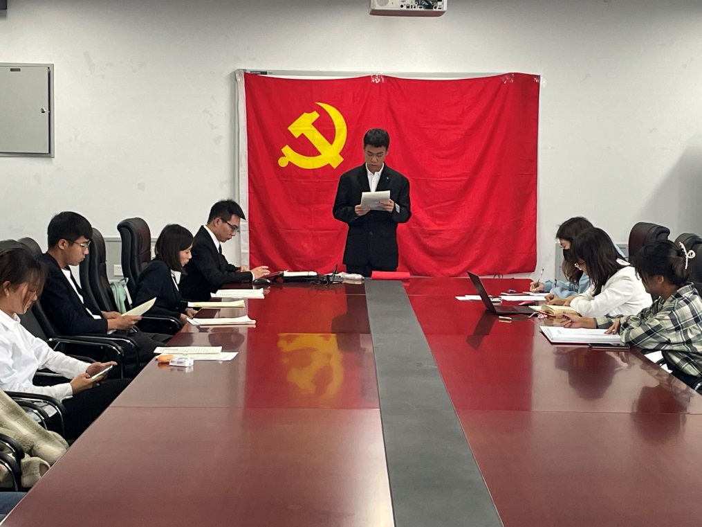 2021年10月14日下午,电信学院自动化系本科生党支部在学D542召开全体党员大会,讨论陈林林、苏畅、王传利、王鑫依、直润文五名预备党员转正事宜,会议由党支部副书记张靖媛主持。