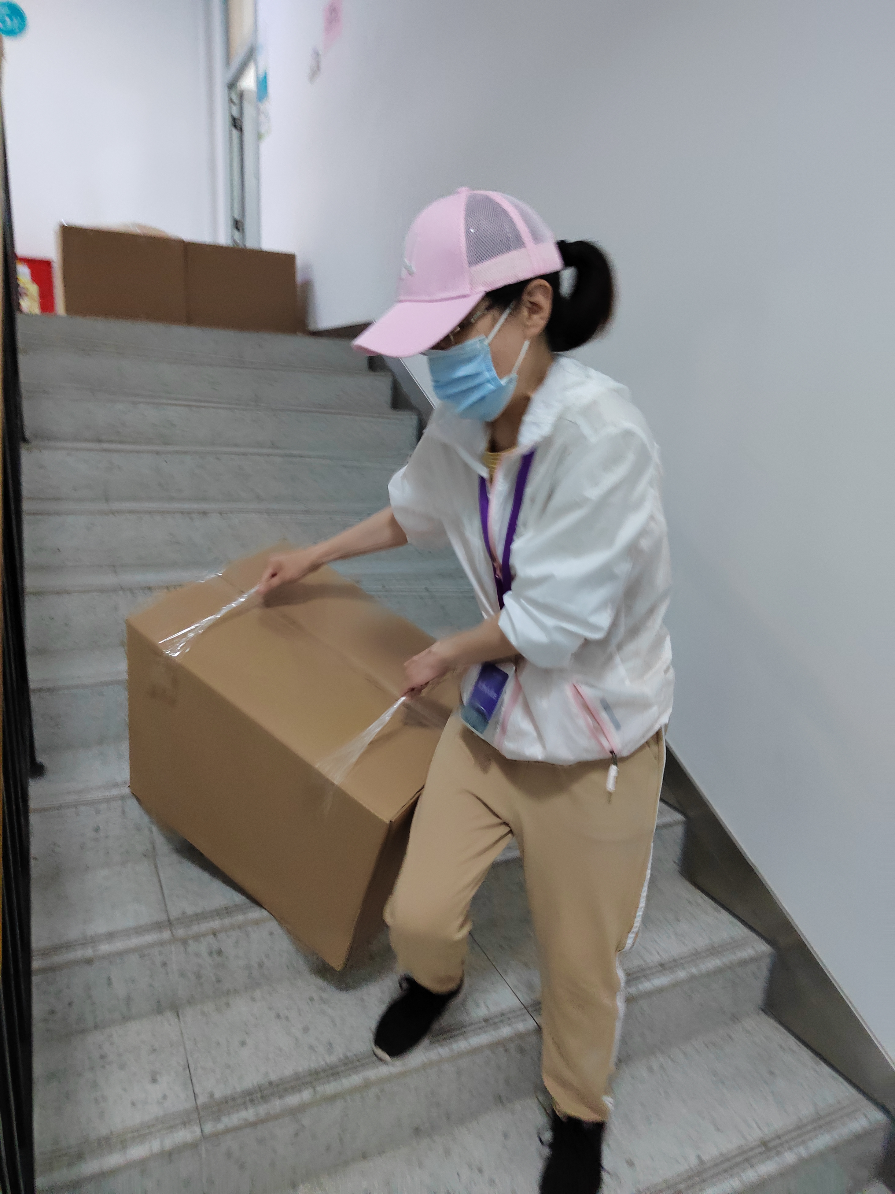 为统筹做好疫情防控和员工服务工作,支部党员积极参与到毕业生行李转运志愿服务工作中,帮助毕业生打包搬运邮寄行李。