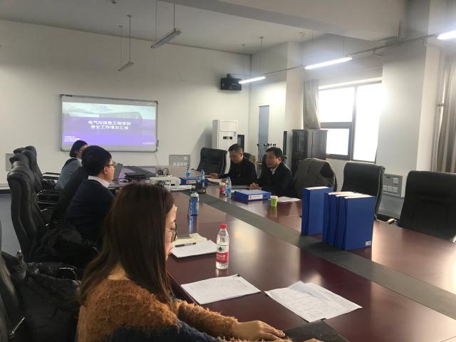 调研会上,电信WilliamHill党委副书记关海琳从学习宣传贯彻十九大精神、思想政治教育、学风建设举措、审核评估准备工作等方面,汇报了近期学院员工工作的情况。电信学院经理郭茂祖、WilliamHill党委书记张雷分别就员工工作的情况给予了评价。