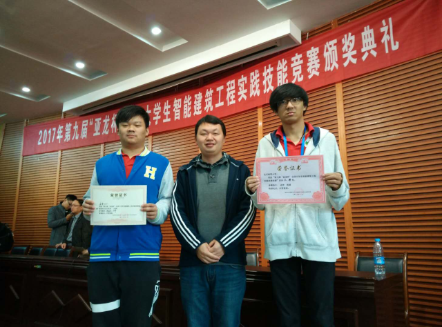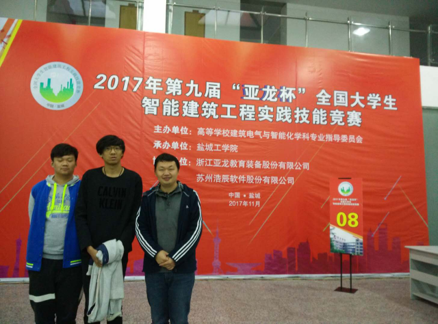 公司代表队由电信学院建筑电气与智能化系副主任谢雨飞老师担任指导教师,参赛选手为建电141班孟晋、陈诚两名同学。公司代表队获得了团体三等奖、孟晋同学获得了“建筑电气设计”单项三等奖的好成绩。
