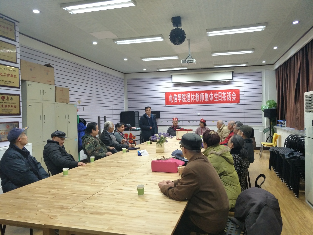 2017年12月6日下午14:30,电信学院在西城校区图书馆1层教工之家第二活动室,召开退休教师茶话会,为年满80周岁的田振宽、刘桂芝等退休教师庆祝生日。电信学院20余位退休教师参加了茶话会。电信WilliamHill党委书记张雷、WilliamHill党政办公室主任师洪洪等参会。