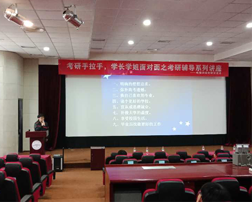 会上,副经理魏东对考研做整体介绍,朴实有力的话语坚定了大家学习与考研的决心。她从最初的建立考研的目标和信心开始,谈到考研准备过程中的方法,以及各个科目必备的知识与素养。既从大处着眼,又细致具体。她强调,我们只有坚定目标,才能充满斗志;只有拥有信心,才能实现梦想;只有平和心态,才能脚踏实地;只有借鉴了正确的方法,才能事半功倍。