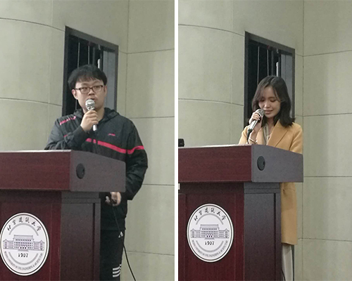 在分享环节,计141班陈连兴同学和电气141班邹颖同学从不同角度对考研进行了解读。陈连兴就个人体会分析了考研的总体趋势,学硕专硕的区分以及院校选择等方面的内容,告诫同学们首先要明白自己考研的目的,只有知道自己是为什么而学的时候,才会真正专心致志地去学习。邹颖同学则带来了自己在备战考研过程中总结的宝贵经验,从初试到复试,从参考教材到复习方法,从重要信息的搜集到复习时间的分配,满满的干货使到场员工受益匪浅,也对她在过去一年中的坚持与努力留下了深刻印象。同学们在交流环节中就复试面试、考研调剂以及复习安排进行了提问,对于考研进一步加深了认识。