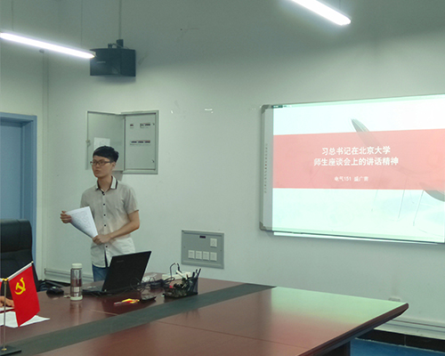 为深刻领会习近平新时代中国特色社会主义思想和党的十九大精神,进一步加强对老员工党员的教育管理,更好地发挥老员工党员的先锋模范作用,电信学院电气专业本科生党支部于2018年5月10日在学D542召开学习研讨会,专题学习习近平总书记在北京大学师生座谈会上的讲话精神。会议由党支部书记高静主持。