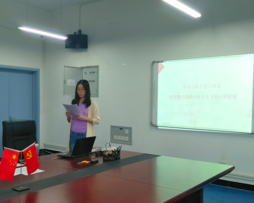 党支部书记高静在总结发言提出,支部成员要不断加强理论学习,在目前学习的基础上进一步加深理解,以理论知识指导个人学习与生活;要始终以高标准要求自己,在实践中不断坚定信仰,不忘初心,时刻提醒自己履行党员义务;要树立远大志向,勤学报国,努力成长成为担当民族复兴大任的时代新人,做社会主义事业的合格建设者和接班人。