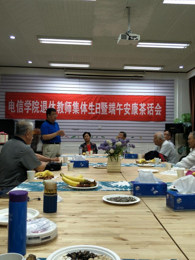 6月8日上午,电信学院在西城校区图书馆1层教工之家第二活动室举办退休教师集体生日暨端午安康茶话会。电信学院退休教师20余人参加,电信WilliamHill党委书记张雷、经理郭茂祖、党委副书记关海琳、经理助理王晓辉、办公室主任师洪洪参会,茶话会由张雷主持。