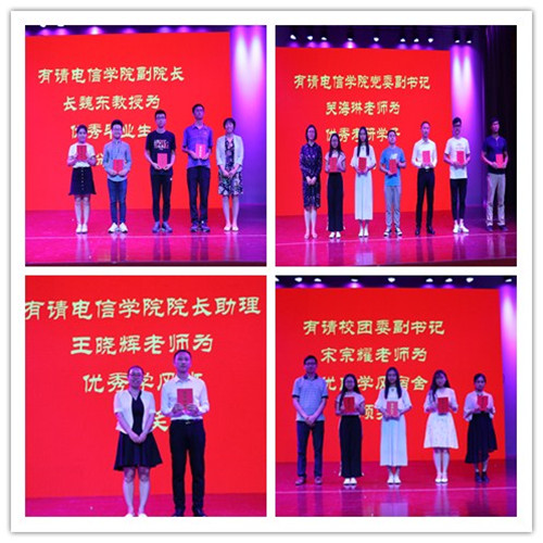 2018年6月27日晚6:30,“知意青春,不负芳华”电信学院2018届毕业生表彰大会暨文艺晚会在大兴校区老员工活动中心如期举办。电信学院经理郭茂祖教授、党委书记张雷老师、副经理魏东教授、党委副书记关海琳老师、经理助理王晓辉老师、校团委副书记宋宗耀老师、各专业教师、班级导师、辅导员与现场200余名2018届毕业生共同观看了演出。晚会由钱程、张宇彤、闫伟祺三位同学主持。