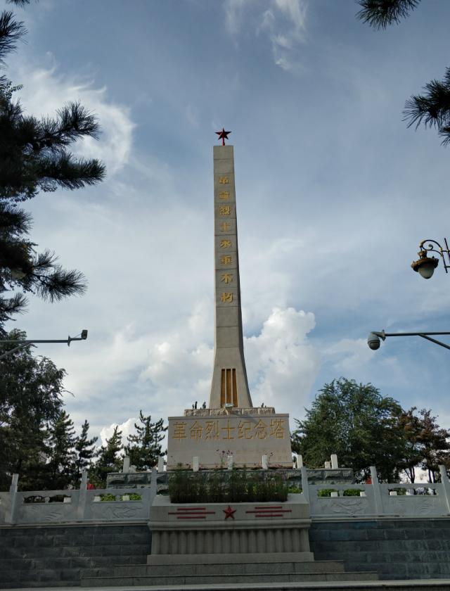 8月27日,实践第一站我们来到了鄂尔多斯东胜烈士陵园,此陵园为纪念解放伊克昭盟的历次战斗中牺牲的革命烈士而建。北侧立有用黑白两色墨玉砌成的烈士谱碑亭,谱碑用蒙汉两种文字镌刻着为解放伊盟而牺牲的席尼喇嘛等166名革命烈士的姓名与简历。