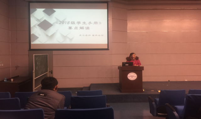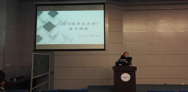 为方便同学们在未来的生活和学习中更详细地了解学校规章制度,近日,电信学院在学院楼B座报告厅举办了2018版《本科员工手册》解读活动。此次活动邀请到了教务处教学运行科史云老师和电信学院辅导员翟玮老师为大家解读员工手册,电信学院教务办公室蒋丹老师、周奕萌老师和电信学院2018级全体员工参加了此次活动。