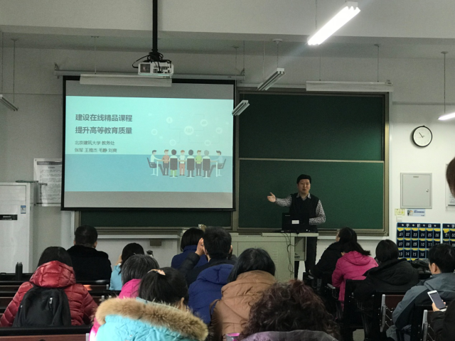 2019年1月15日,电信学院邀请教务处副处长张军进行了“在线精品课程建设”专题培训会,电信学院全体领导和教职工参加本次培训。培训主要从在线课程建设意义、公司在线课程现状以及在线课程标准与技术支持三个方面进行了专题辅导。