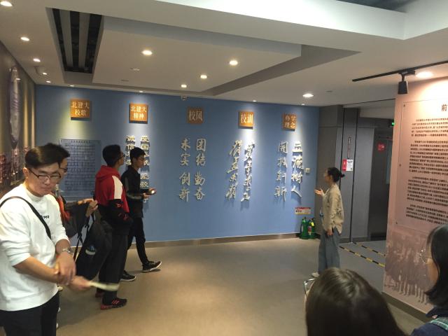 首先,讲解员为同学们讲解了校风、校训、北建大精神、学校办学理念以及办学历程。主要介绍了学校从1907年创办京师工业初等学堂到1936年增设土木工程科直至今日的光辉历程。发展成就部分,集中展示了改革开放以来,学校在党的建设、人才培养、团队建设与研究生教育、科学研究、团队队伍、校园文化、国际交流、办学条件、校办产业等各个方面取得的辉煌成就。