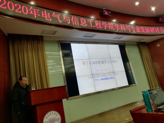 在学术讲座环节,学院邀请北京交通大学于剑教授做了《基于认知的机器学习公理化》学术报告。在大数据时代,因应用需求的驱动,大量新机器学习方法不断产生。这些新算法理论依据各异,彼此之间的关系复杂,对学习算法的使用者要求较高,为机器学习算法的应用和推广带来了困难。为了解决上述问题,于剑教授提出了一个统一基于认知的机器学习公理化框架,推演出了归类方法的三条设计原则,以统一的方式重新解释了数据降维、密度估计、回归、聚类和分类等问题,而且与日常生活中的认知原则一致。于剑教授提出的这套符合人类认知的机器学习理论能够有效推动我国人工智能和机器学习领域的进步。