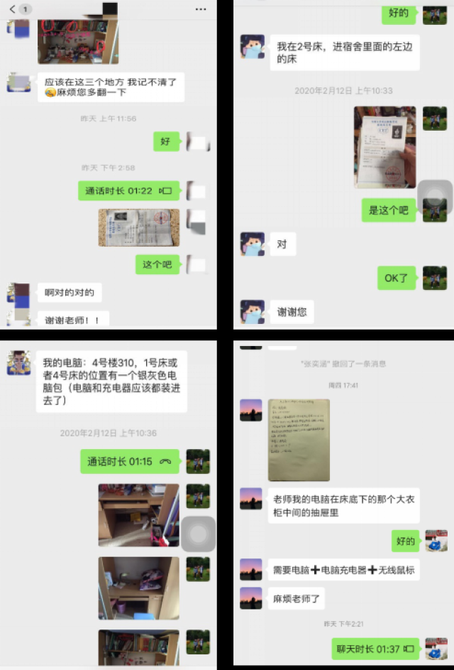 电信学院为进一步保障教学工作顺利开展,针对学习资料或电脑滞留在学校的员工提供拿取服务。学院研究生导师、辅导员采用双人视频连线员工的方式取出物品,京内员工的物品送至校门外转交员工,京外员工的物品通过快递的方式邮寄。共为23名本科生、2名研究生拿取物品,其中邮寄快递10件。从宿舍到校门,或到邮寄地点多次往返,累计50余次。