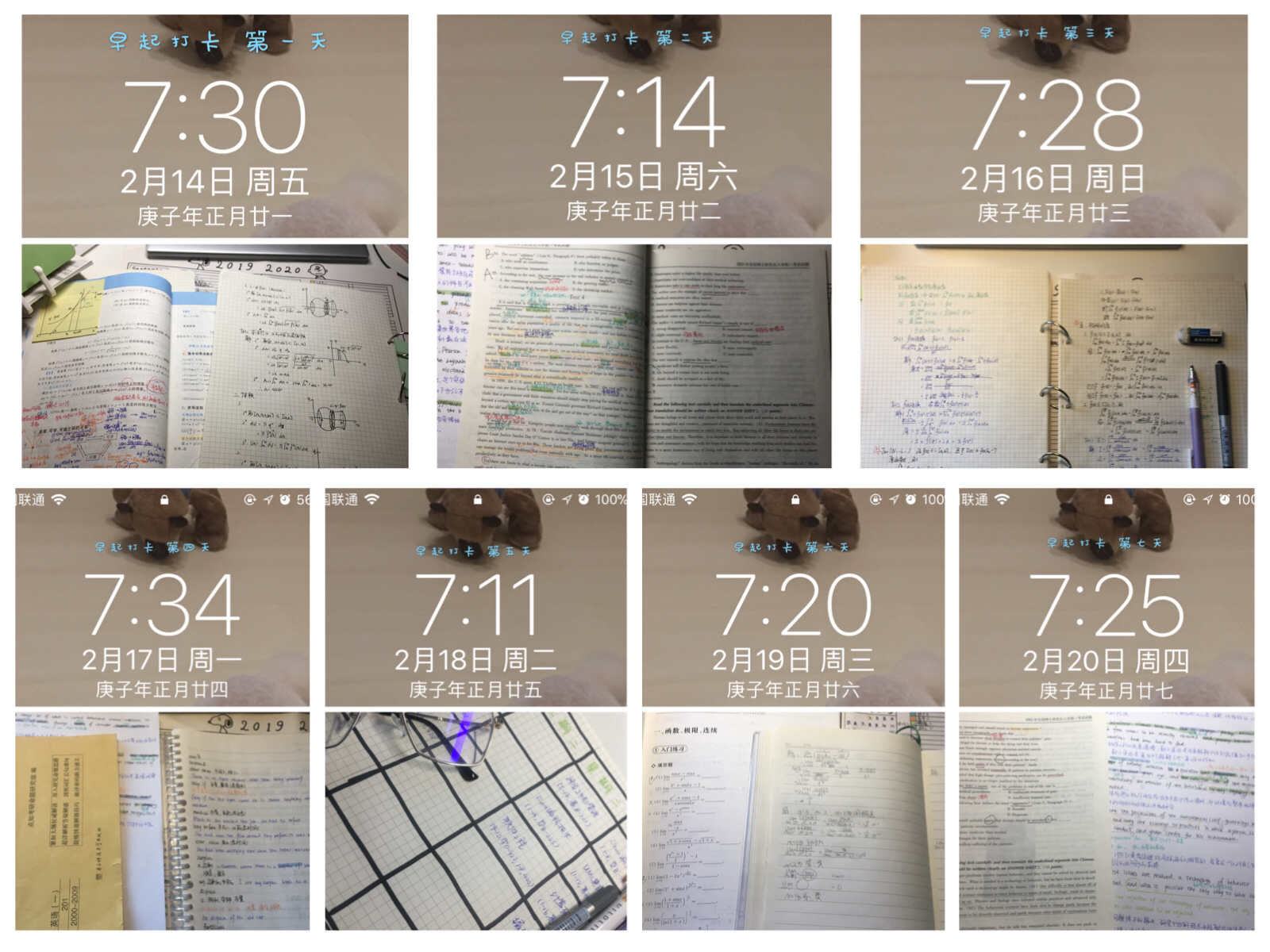 连续7天,早起打卡、复习高数打卡