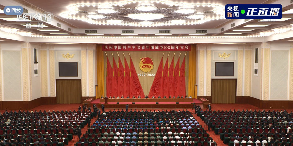 5月10日,庆祝中国共产主义青年团成立100周年大会在北京人民大会堂隆重举行。