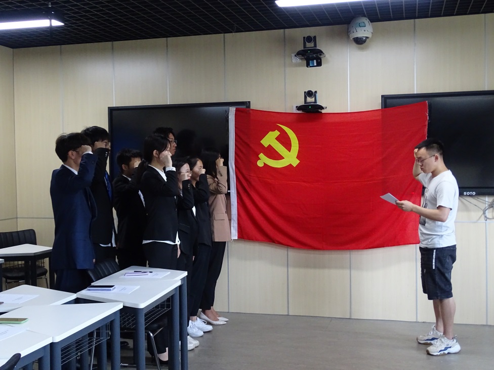 八位同志在何建林的带领下,面对党旗庄严宣誓。并表态,在今后的工作学习中,将始终以共产党员的标准严格要求自己,在班级、课堂、宿舍中争做排头兵,用实际行动践行自己的入党誓言。