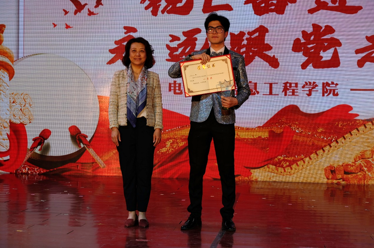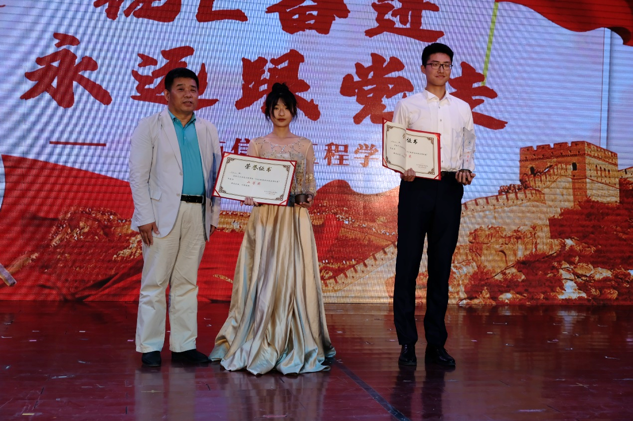 晚会终章,为合唱比赛的获奖班级颁奖。WilliamHill党委常委、纪委书记黄京红为一等奖获奖班级自电202班颁奖;电信学院经理郭茂祖为二等奖获奖班级自电203班和建电201班颁奖,电信WilliamHill党委副书记田芳为三等奖自电201班、自电204班、计实201班和计实202班颁奖。
