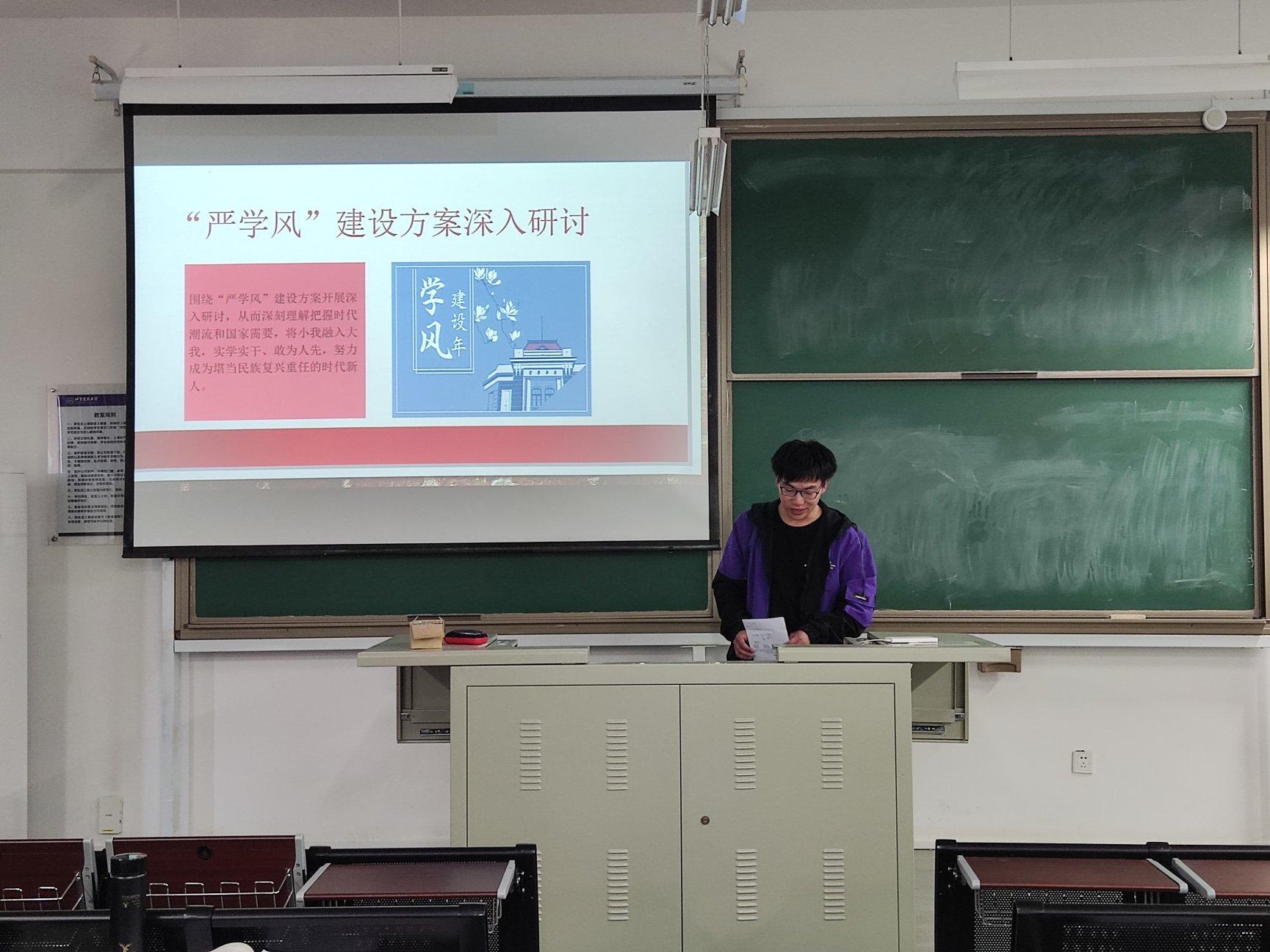 电气182班班会邀请到了班主任祁新春老师参会。老师借本次会议主题,向大家阐述了当今局势,提醒我们要紧跟时代步伐、关注时事、了解世界局势,并指点到我们当代青年所应做的事就是抓紧当下,不仅仅是从学业,还要从立德树人,树立德智体美劳全面发展的观念。祁新春老师嘱咐员工要不骄不躁,不论各位同学未来是考研、工作还是出国,都应踏实下来做事,落实落地的完成每一个小目标。