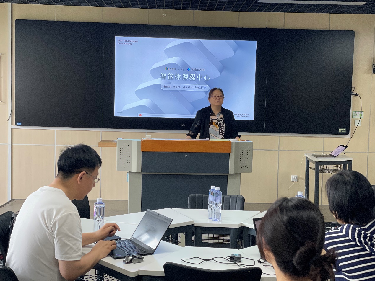 本次活动紧扣“AI如何助力教师减负增效”这一核心目标,重点介绍智慧课程新形态--“智能体课程”搭建。 通过详细讲述AI赋能新形态教学、备课/作业/学情分析一站式解决、智能体课程演示,组织老师们进行实操互动,使老师们对AI技术在教育领域的应用场景及实践路径形成了更清晰的认知。