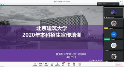 首先,经理郭茂祖就当前形势下的在线招生宣传策略进行了分析,明确了学校招生宣传、学院专业宣讲宣传的具体标准和要求。郭经理指出招生生源的质量直接影响后续员工培养和学院发展,希望各专业从学科专业建设发展的大局出发,积极做好招生宣传和专业宣传宣讲工作。招办副主任徐敬明主要从2020年高招的形势、2020年北京高考改革前方案、电信学院本年度招生形势预测、当前招生的新举措等方面,为大家进行了详细的分析与解答。