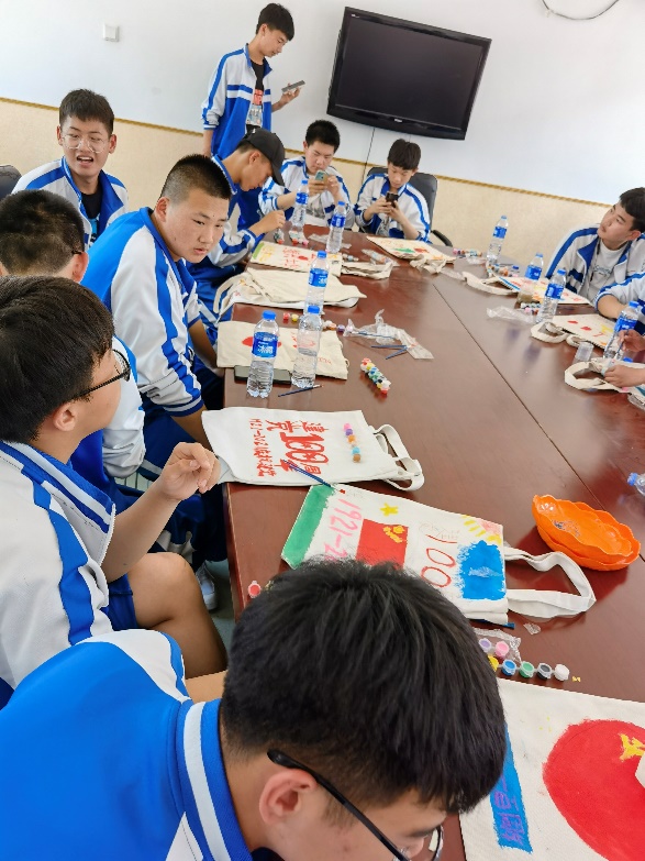活动第三环节为手绘文化袋。北京汽车技师学院的员工们手绘了二十几幅以建党百年为主题的手提袋,在色彩、线条、构图、造型中笔笔勾勒,庆祝建党百年。