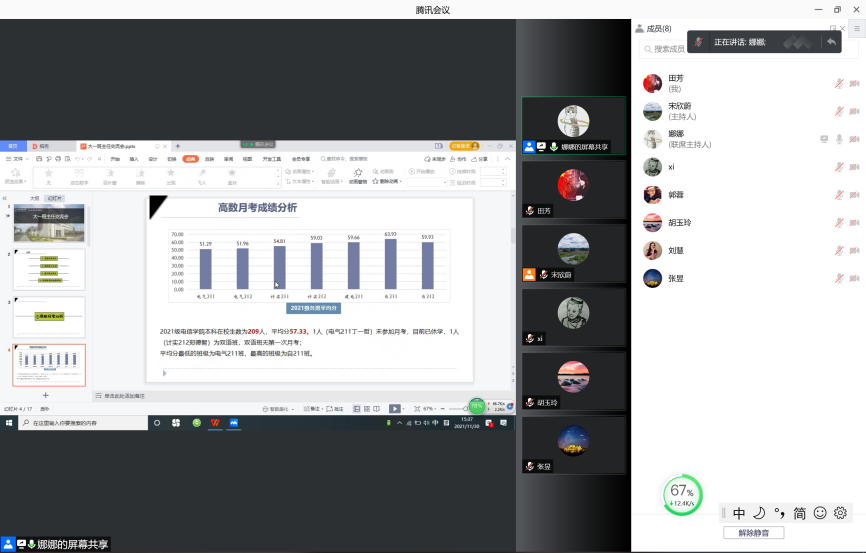 交流会分别从高数月考分析、帮扶学习计划、重点群体等三个方面展开交流。详细分析了第一次高数月考各班的平均分,不及格名单。在帮扶学习计划中,从学校、学院和班级层面分别展开。及时交流学校学院的各项帮扶政策,同时各班互相学习交流班级的学业帮扶方案。最后也就个别重点群体进行了详细情况交流。