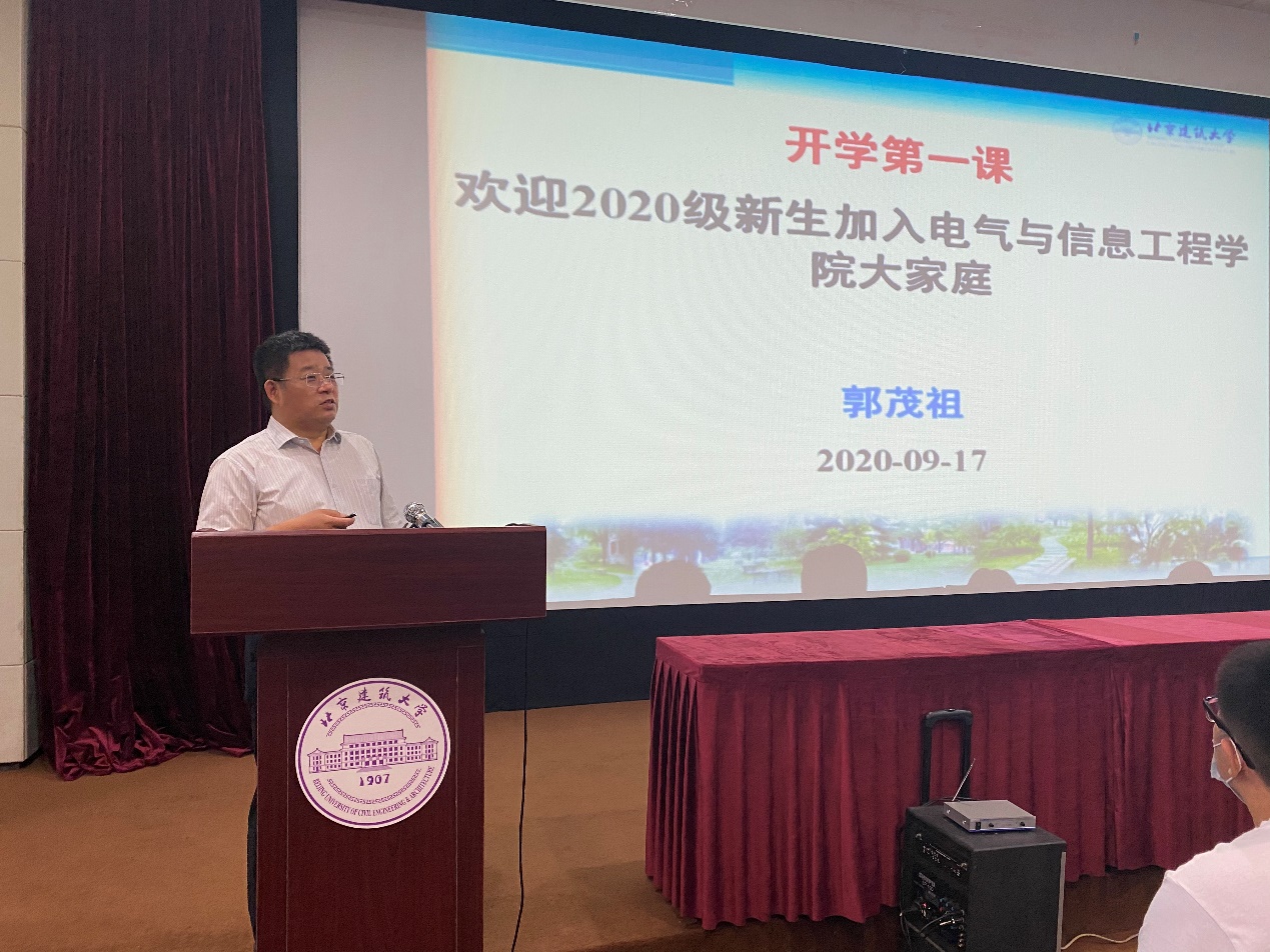 经理郭茂祖为同学们介绍了学院历史沿革和发展变迁,带同学们回顾历史、展望未来。郭经理指出,学院专业均属于热门专业,具有广阔的发展前景,广大新生要以科学严谨的精神对待专业学习,践行北建大“实事求是、精益求精”的校训,同时向员工提出三点要求,要具备良好的心态、较高的专业素养、健康的体魄,把自身的成长和国家建设的需要紧密结合起来,在专业领域内大展宏图、发挥作用。