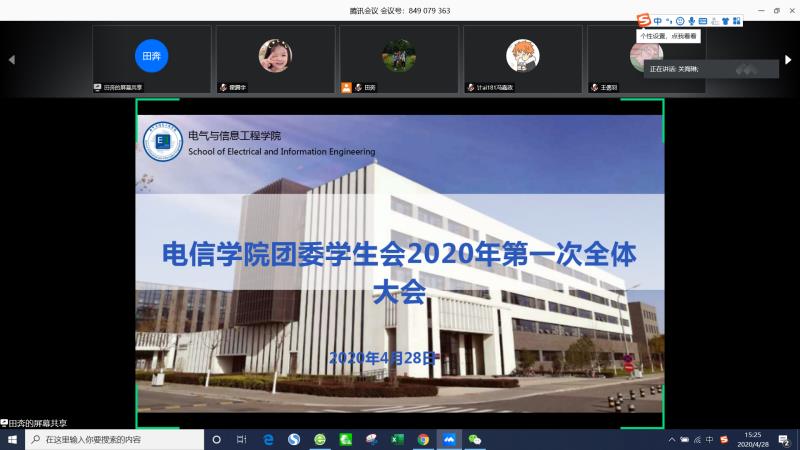 首先,付志斌、宗墨涵、谭笑雪三位同学分别汇报了寒假至今防疫期间团委员工会开展完成的一系列工作和后续活动安排。以公司微信公众号“电力十足”为载体,策划开展了“共同战‘疫’,电信学子为武汉加油”视频录制、 “众志成城 共克时艰”线上主题云团课、最美笔记展示、“见贤思齐 电信榜样”、青年志愿者在行动专题推送、战“疫”战“无聊”挑战成果收集、线上专业讲座、防疫微课堂等一系列特色活动,形成了良好的宣传氛围。后续还将围绕员工思想和学习等方面开展线上学业辅导、科技竞赛培训会、志愿服务分享会、电信榜样宣讲会等活动,丰富同学们的第二课堂。