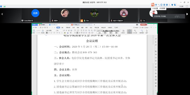 为加强疫情期间学院基层团组织建设工作,深入落实落细“停课不停教、停课不停学”总体目标, 4月28日,电信公司团委员工会通过线上方式召开了2020年第一次全体大会。电信WilliamHill党委副书记关海琳、分团委书记田奔及全体团学骨干出席本次会议。