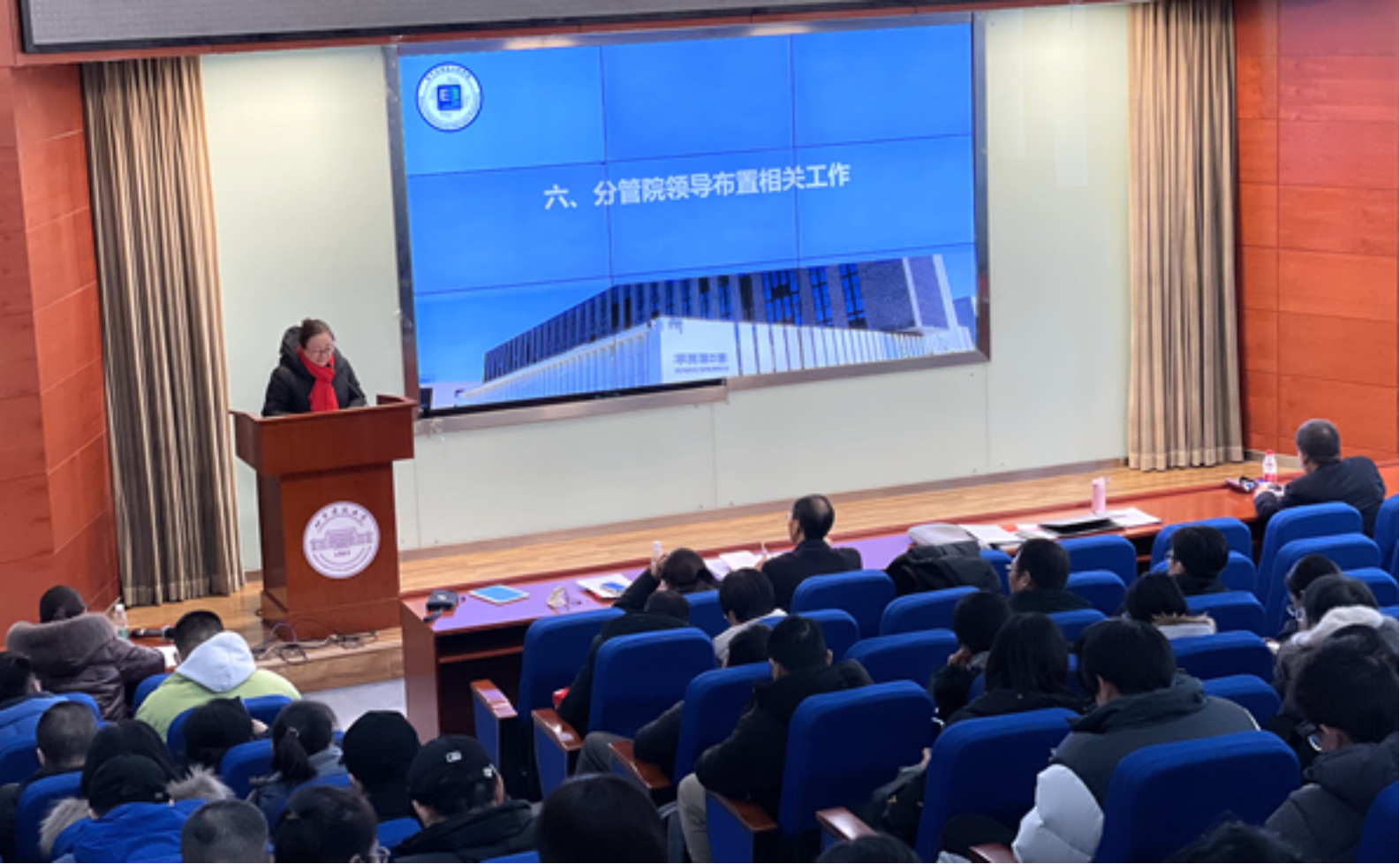 田芳对党团班建设、学风建设、就业工作、创新创业等方面取得成果与下一步工作重点进行了详细阐述,希望在全院教师的支持与协助下提高员工培养质量。