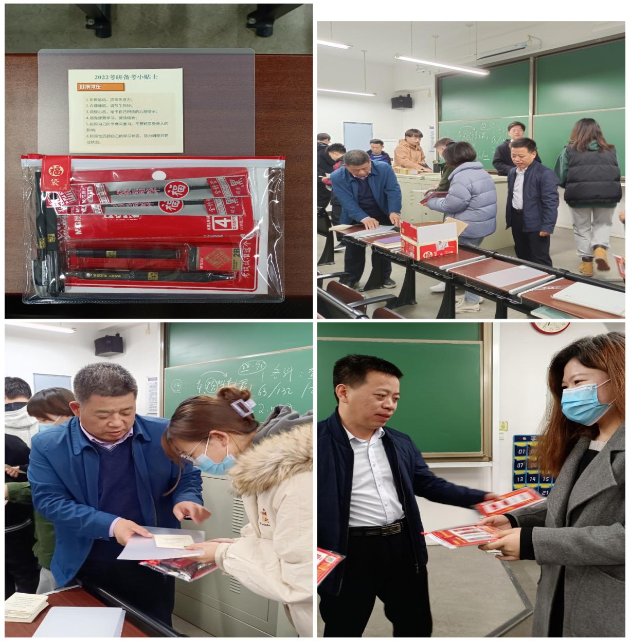 最后,学院领导亲自为同学们送上了慰问小礼品,祝福同学们在考试中取得自己满意的成绩。攀蟾折桂!