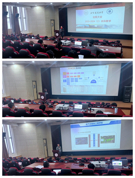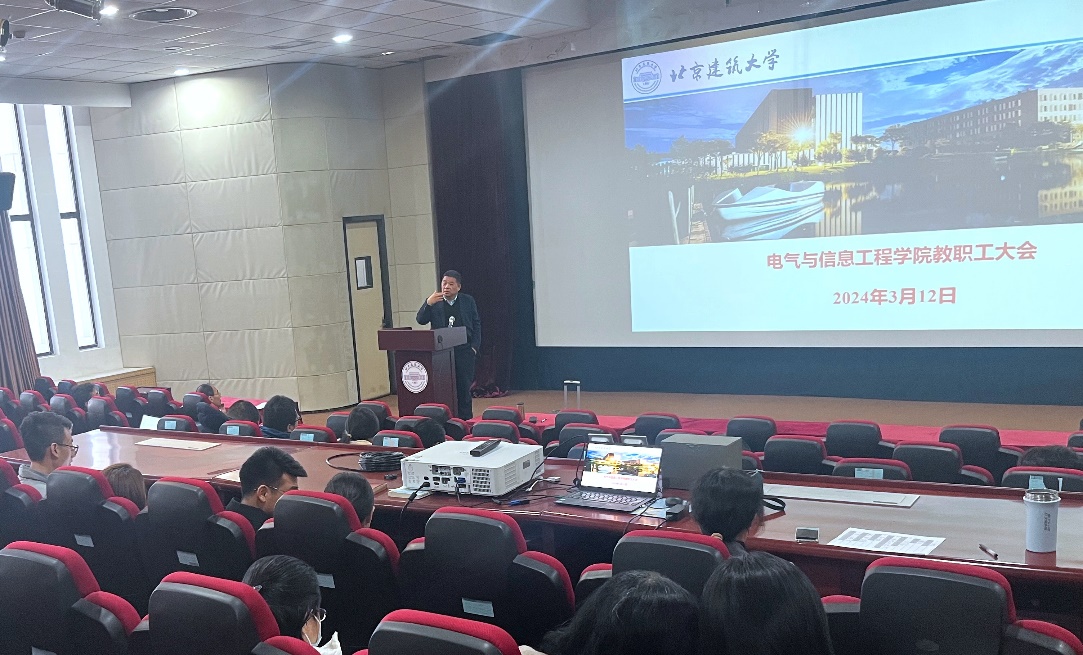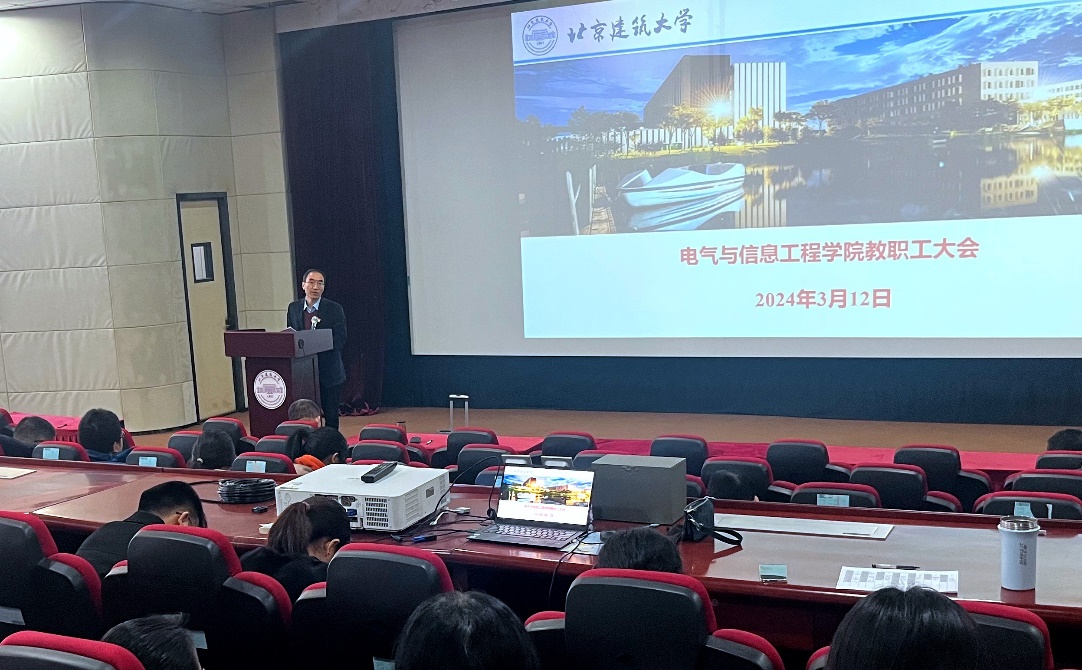 副经理马鸿雁就审核评估整改、本科生培养方案修订等工作进行部署,并再次强调要加强教学工作的规范性;党委副书记田芳通报了2023年员工工作取得成绩,并对就业推进、学风建设、创新创业等2024年重点工作做规划安排;副经理赵光哲介绍了2023年度科研指标完成情况及2024年科研目标和重点工作,对北京市重点实验室申报工作进行动员,并通报了团队建设和研究生工作情况。