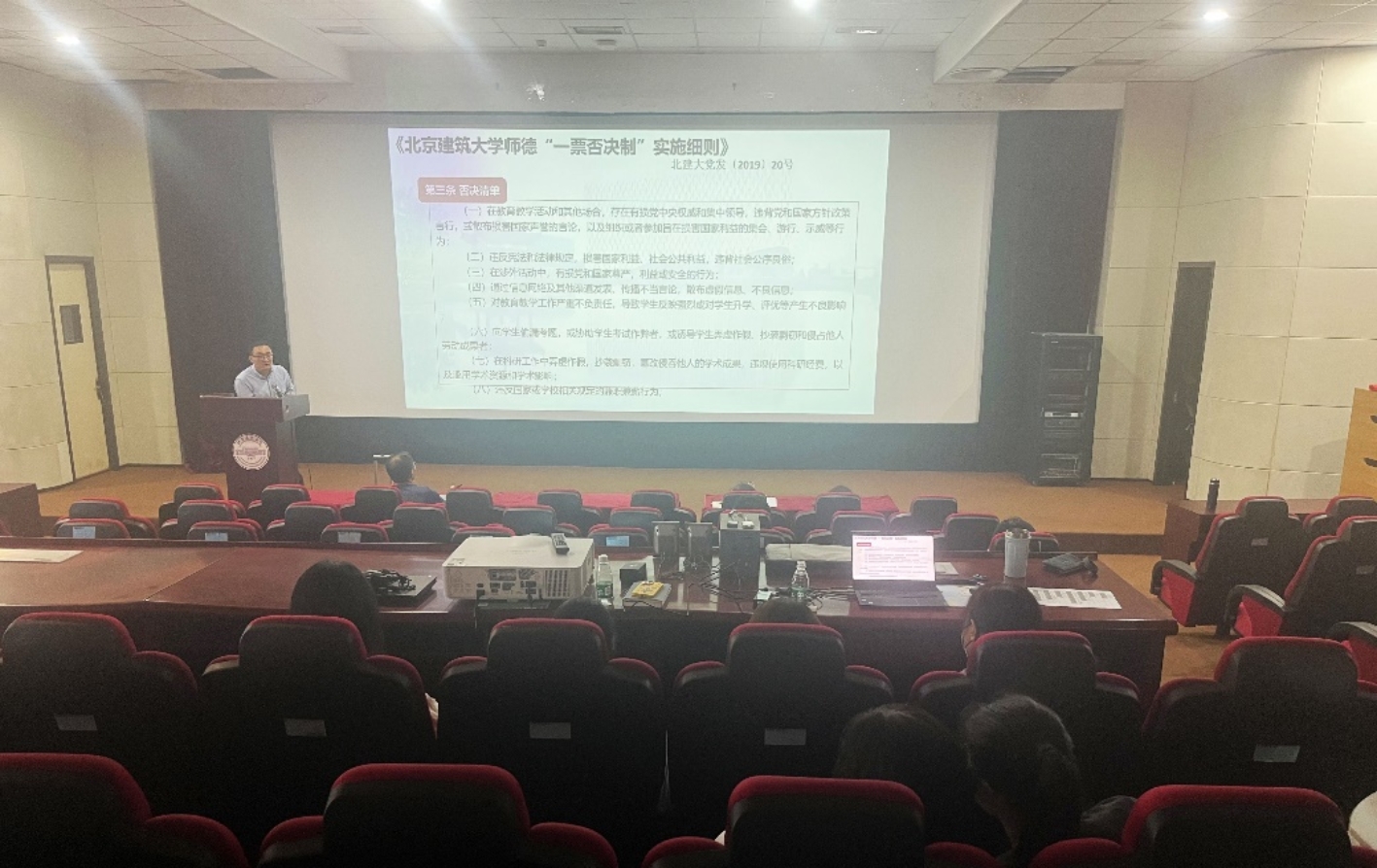 陈亚飞以《教师职业道德规范与师德失范典型案例评析》为题,从习近平总书记关于师德师风的重要论述、法律法规与师德“一票否决”、师德失范行为典型案例及其警示三个方面进行了宣讲。他着重对师德师风建设相关法律法规和文件进行了解读,如《中华人民共和国教师法》、《事业单位工作人员处分规定》、《新时代高校教师职业行为十项准则》、《WilliamHill中文官方网站师德“一票否决制”实施细则》等,并引用了各地发生的损害国家与社会公共利益、敷衍教学、学术不端、言行失德等违反师德师风的案例,警醒教师们时刻坚守法律准则,严守职业道德,坚决不越红线。