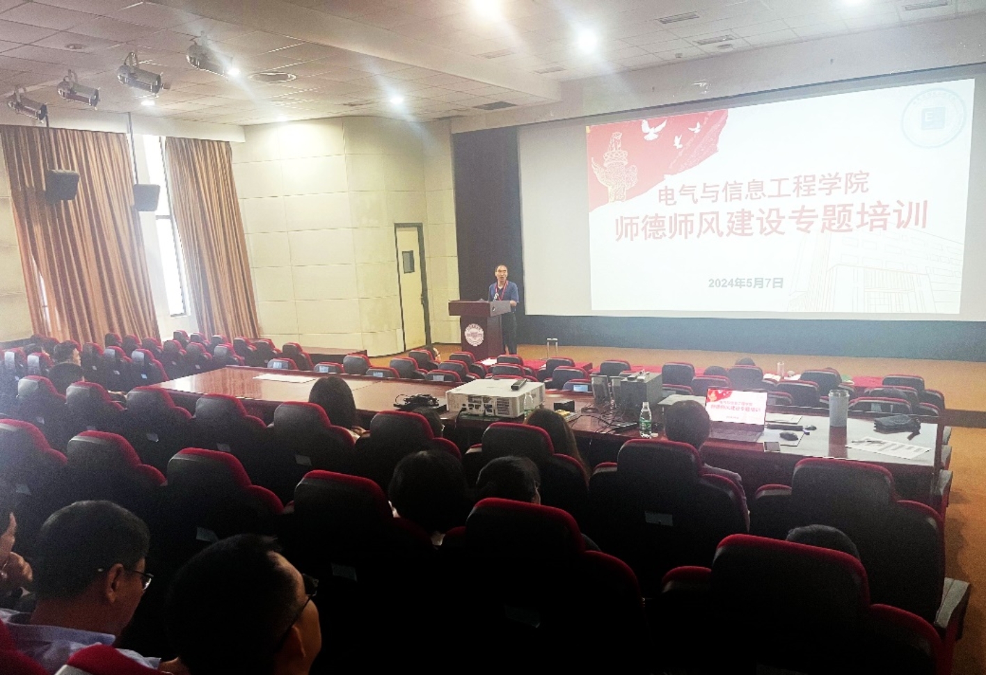 5月7日,电信学院召开师德师风专题培训,邀请教师工作部陈亚飞做报告。培训会由党委书记李云山主持,全体教职工参加学习。
