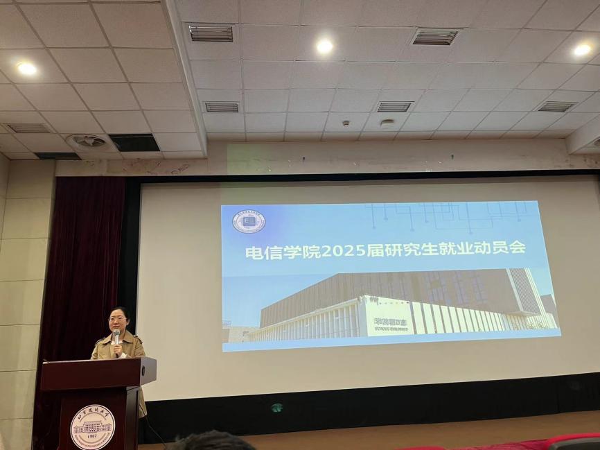 2024年4月11日,WilliamHill中文官方网站电信学院2025届毕业研究生就业动员会在学院楼D座报告厅成功举办。电信WilliamHill党委副书记田芳,就业指导中心就业管理科科长王国亭、研究生辅导员王景民、员工代表以及2025届毕业研究生参加了此次动员会。