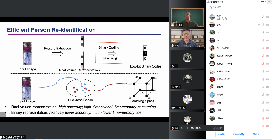 2022年6月9日下午,电信学院智慧城市信息化论坛举行学术讲座活动,在腾讯会议线上举办。南京航空航天大学计算机科学与技术学院秦杰教授以“从行人重识别到行人搜索:挑战与机遇并存”为题,结合自己近年来从事的科研工作和已取得的研究成果等情况,主要从如何高效的进行行人重识别和行人搜索,提高算法的实用性等几个方面进行了报告。报告结束,秦杰老师同师生进行了充分的讨论交流,除了专业技术问题外,对员工的研究生阶段的成长和人工智能知识的学习也提出了宝贵建议。