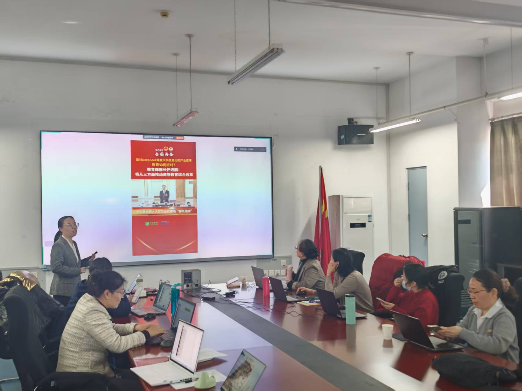 活动尾声,马鸿雁副经理作总结发言。她强调,教师需以课程建设为抓手,在教学设计、资源开发、评价体系等环节积极使用AI工具。同时,她鼓励教师在将更多精力投入到AI特色教学创新中,为学校高水平特色型大学建设贡献智慧力量。