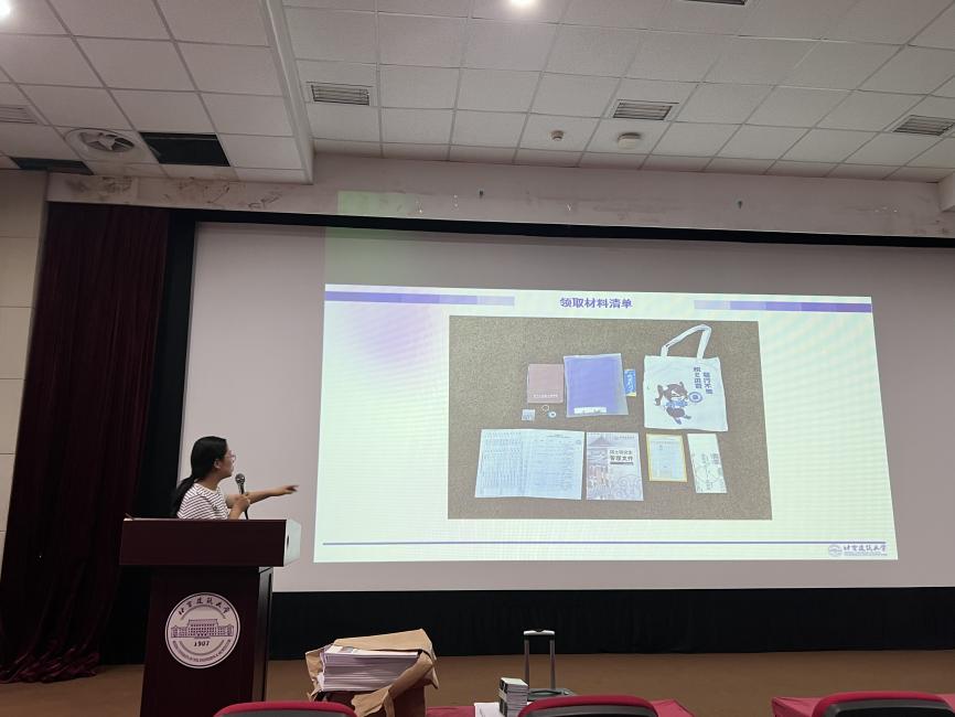 最后,张嘉彤详细介绍了近期的教学安排、员工证的填写规范、研究生公共课情况,并对员工关心的教学系统使用、各项教学政策文件等内容进行交流解读。帮助2024级研究生新生对研究生阶段学业任务有了更加清晰的认识。