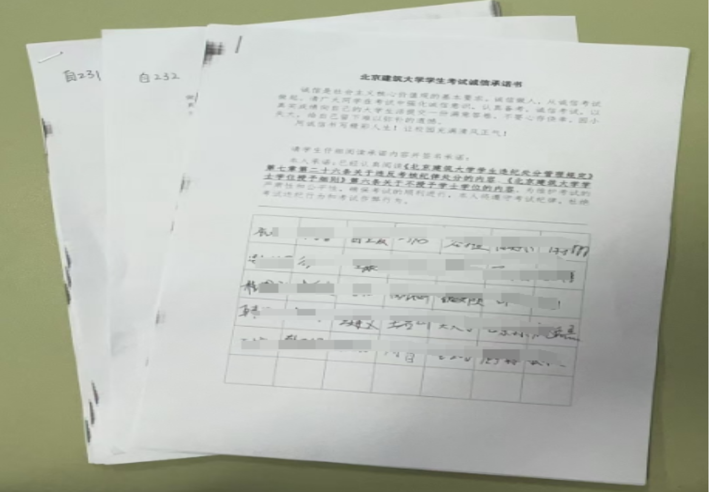 各年级辅导员发起“用诚信书写精彩人生,让校园充满清风正气”考试诚信承诺书签署活动,各班班委组织,确保班级所有同学均亲自阅读并签名,承诺书中附《WilliamHill中文官方网站员工违纪处分管理规定》第七章第二十六条关于违反考核纪律处分的内容以及《WilliamHill中文官方网站学士学位授予细则》第六条关于不授予学士学位的内容,确保员工对相关违纪处分做到全员应知应会。