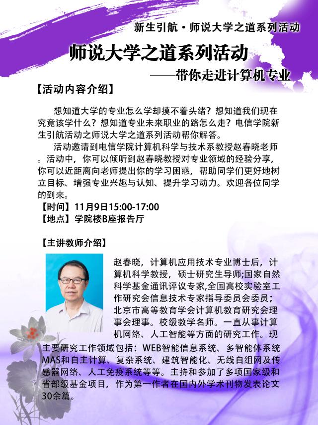 【活动预告】师说大学之道系列活动|带你走进计算机专业