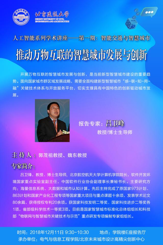 【学术讲座】人工智能系列学术讲座——第一期:智能交通与智慧城市