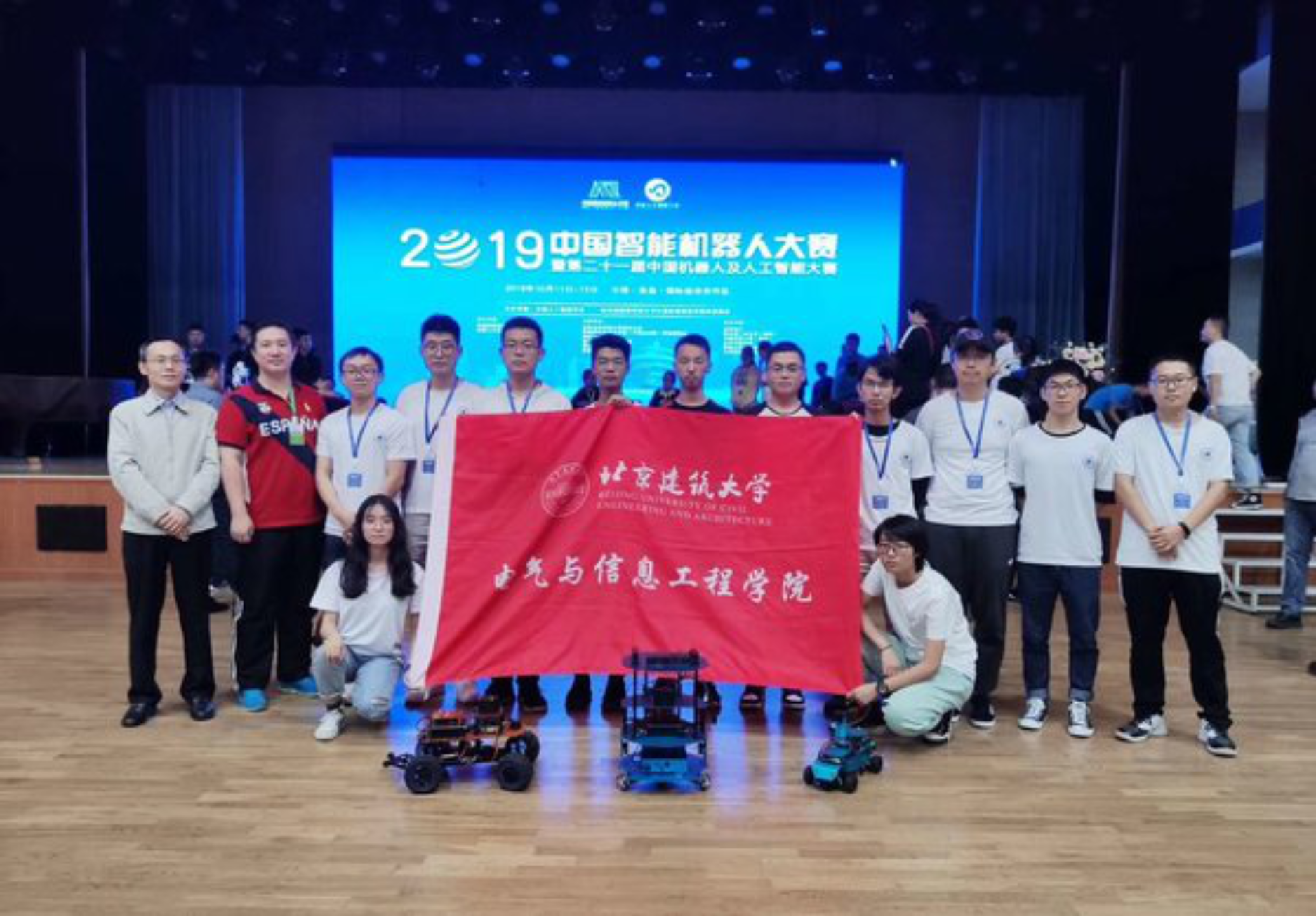 在大二到大三的暑假期间,先是去天津参加了华北赛区的“恩智浦”智能车竞赛,然后也有幸参与了庆祝中华人民共和国成立70周年游行活动,感觉特别有意义。然后在这个活动期间我又参加了全国老员工电子设计大赛并获得三等奖。在大三期间,跟团队一起在金工楼进行科技立项自主研发擂台机器人参加华北五省机器人擂台赛获得奖项,然后又去青岛参加人工智能及机器人大赛而且有所收获。这样在大三学期末,我获得了校综合二等奖以及优秀员工及优秀员工干部称号。